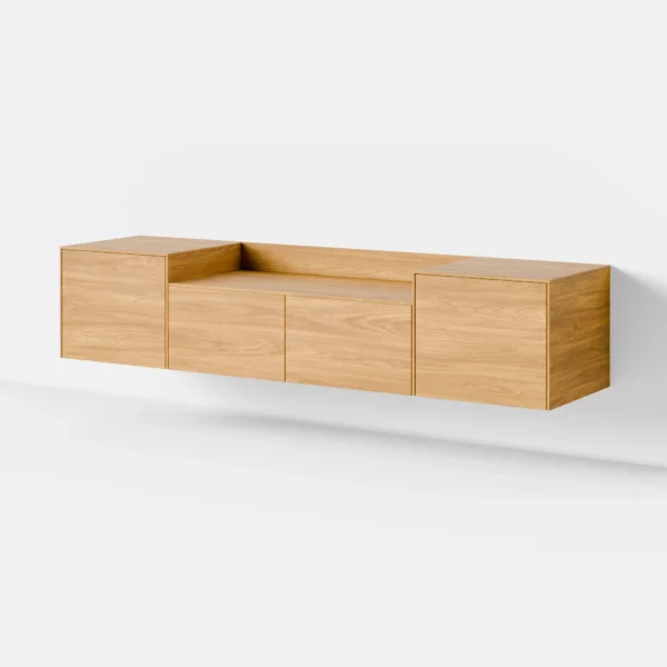 הפתרון המושלם לסלונים קטנים או לחללים שרוצים לשדר קלילות. מזנון צף יוצר תחושת מרחב, מאפשר התאמת גובה מדויקת לטלוויזיה ומשאיר את הרצפה נקיה ואוורירית. הוא מעניק מראה מינימליסטי, חד ומסודר ומתאים במיוחד לקו מודרני נקי.